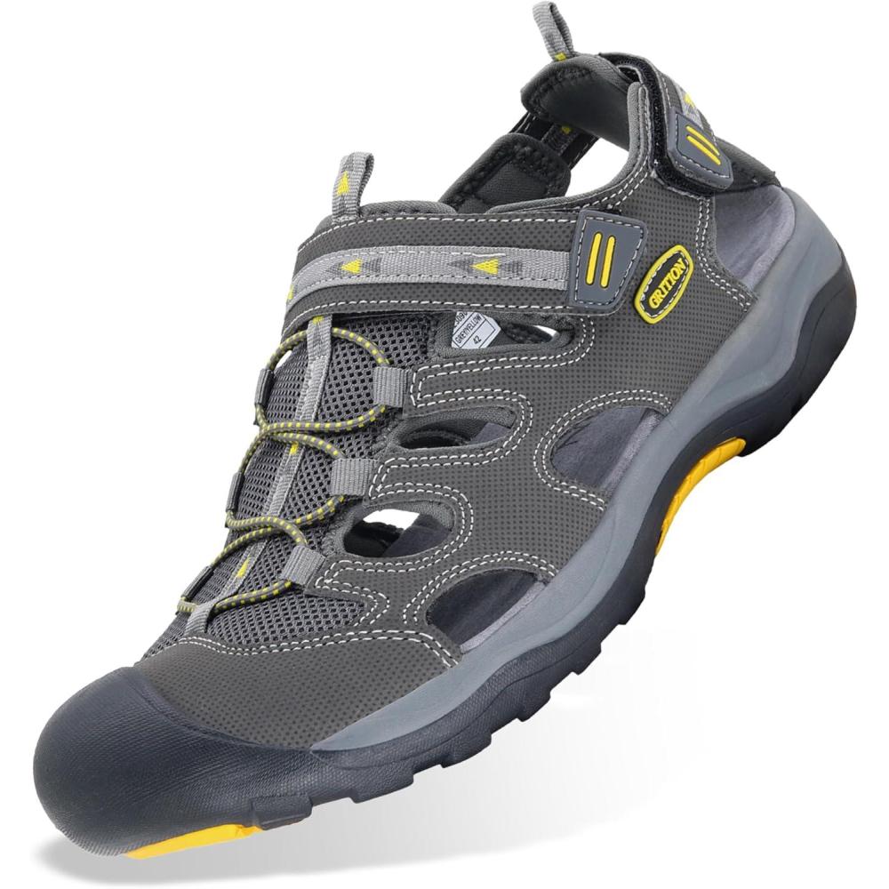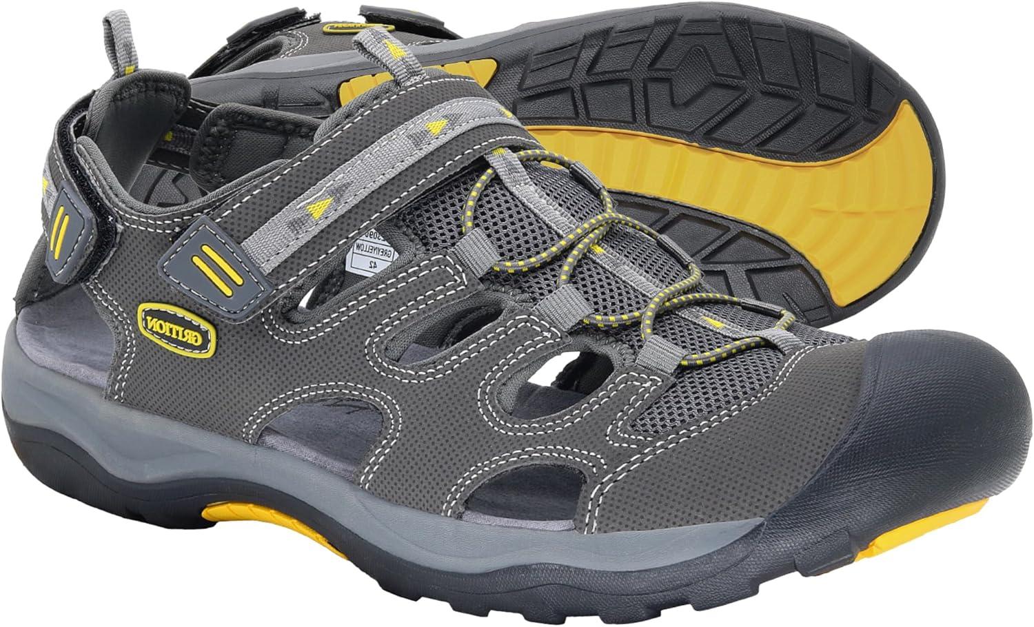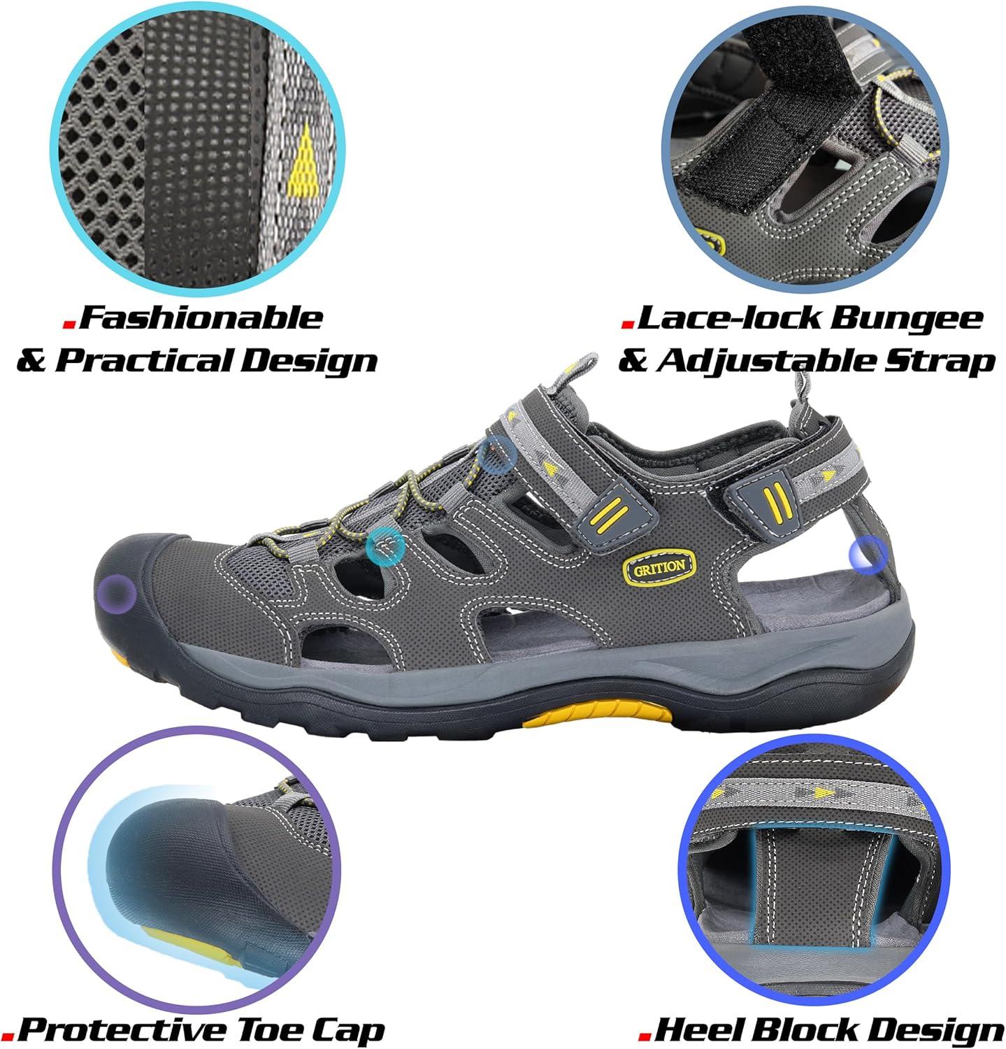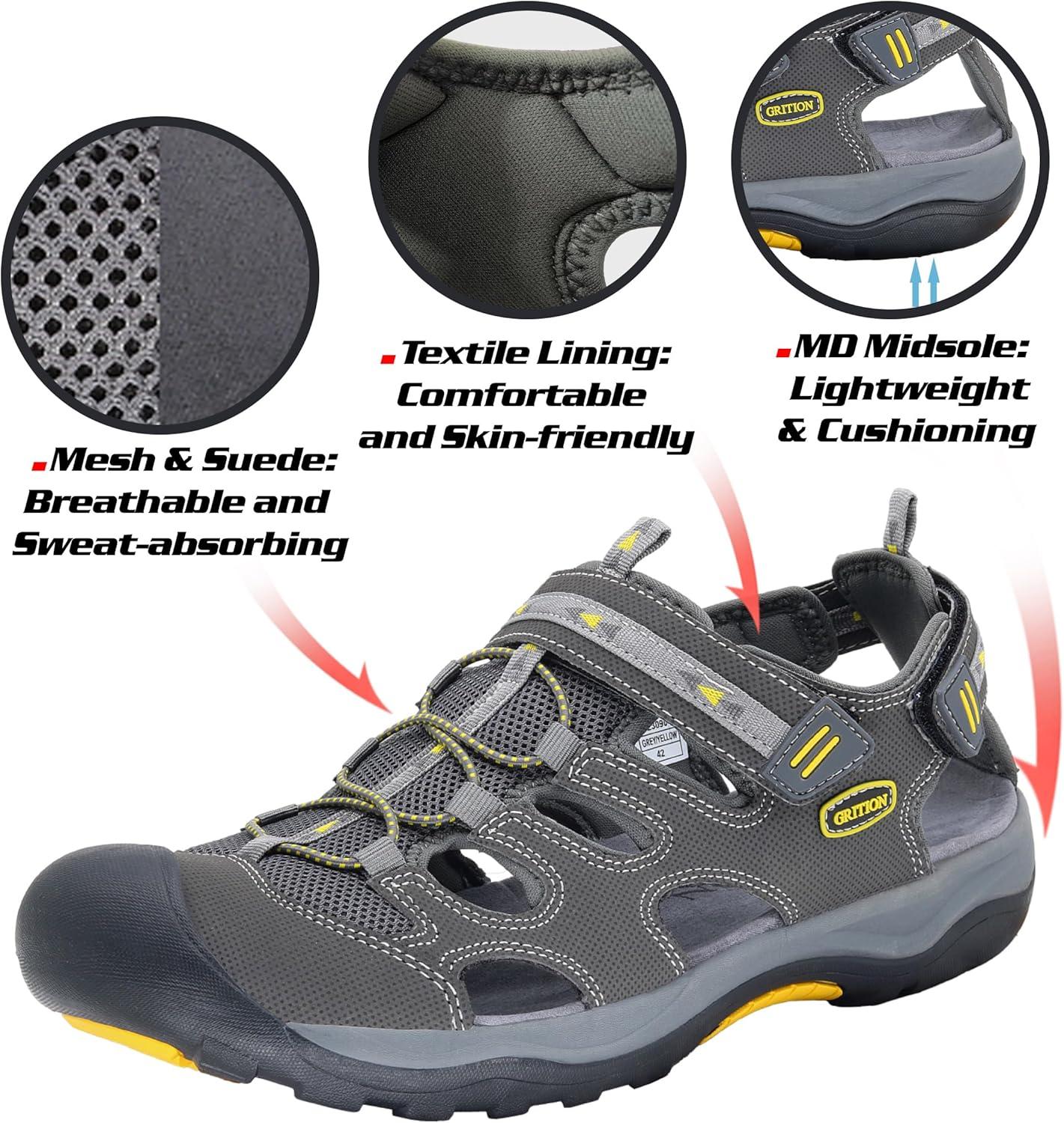 GRITION Men’s Closed Toe Hiking Sandals Water Sandal for Men Hiking Shoes Grey Yellow 9US 42EU